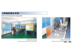 Electrophoresis coating equipment is composed of a transportation component, electrophoresis tank and auxiliary equipment, stirring & filtration circulatory system, ultra-filtration settings, stirring & feeding device, a DC power supply and adjunctive electrical equipment, a flushing device for post-electrophoresis, a thermostat for the paint liquid, an electrode device, a drying room and so forth.